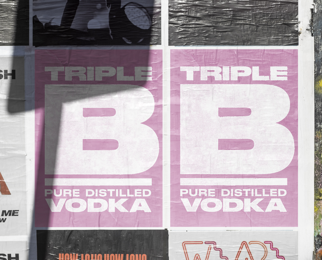 Bristol Distilling Co wanted a gritty, hard hitting vodka brand to add to their already successful range of spirits. Adopting an even bolder approach to this identity, we developed a typographic approach that does exactly what it says on the tin. The design has a letterpress feel – with rough edges and a ‘roller’ texture; an overall note of the hand-made! Topping things off with a fluorescent pink colour palette, Triple B really stands out amongst its rivals, with great uptake from bars and restaurants. The identity also lends itself perfectly to merchandise and social. No messing – it’s definitely vodka!